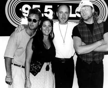 Mark & Brian regularly commandeered the parking lot for their own purposes, That morning, they invited listeners to come down to the radio station with their guitars, to join in a giant guitar jam with Townshend on “Pinball Wizard”. The below picture shows Pete on stage playing “Pinball Wizard”.